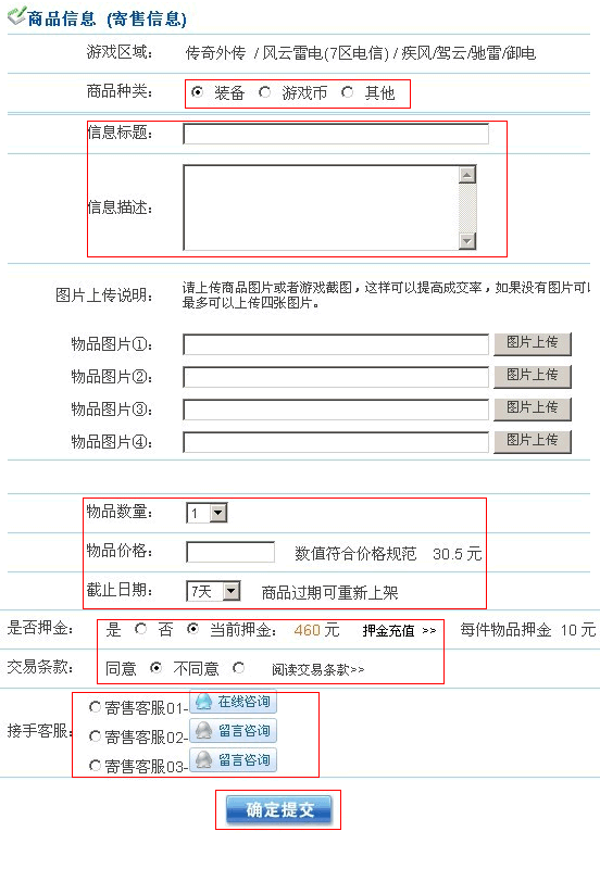 四:填写出售信息